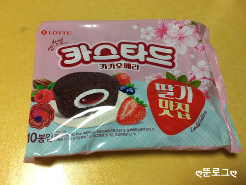 코.로.나 덕분에 집콕하느라 군것질에 푹빠진...1인ㅠㅠ 마트에 장보러 갔다가 항상 군것질만 잔뜩 사오는거 저만 그런거 아니죠? 얼마전에 과일사러 마트 잠깐갔다가 눈에 딱보이길래 구입한 롯데 신상과자 카카오베리카스타드 리뷰입니당 봄시즌을 맞아서 롯데에서 리미티드 에디션으로 나왔더라구용 카카오베리는 달달한 밀크 크림 속에 상큼한 베리잼이 들어있는 카카오 케이크!! 쪼오기 '딸기맛집'이라고도 적혀있네용?ㅎㅎ 포장이 분홍분홍하니 이뻐서 더끌린건 안비밀^^ 베리잼6.6% 블루베리 농축액 0.18% 딸기농축액 0.14% 코코아분말 2.1% 1봉지당 110kcal....그냥 건강한 돼지하쟈...ʘ̥_ʘ 10봉지가 들어있었어용 (10봉지 작당....나는 순삭인데ㅠㅠ) 겉에 카카오는 달고묵직한 특유의 맛과 안에는 달달..