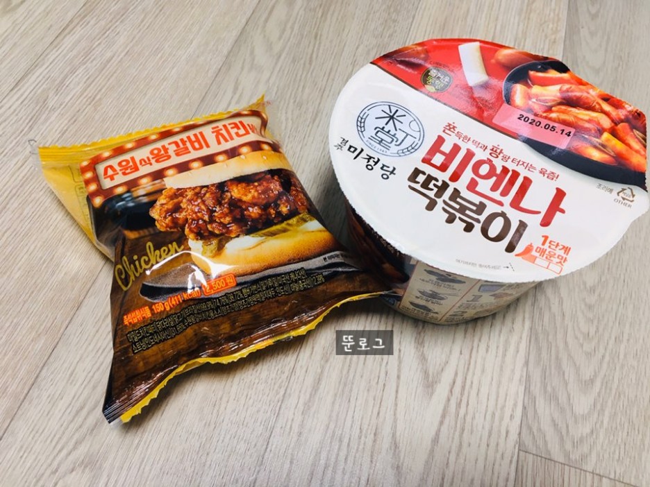 드디어 제가 자주먹는 편의점 최애 떡뽀끼 리뷰 폿팅입니당◟( ˘ ³˘)◞ ♡ 요거 나오자마자 진짜 몇번이고 보일때마다 사먹었어욤!!! 진짜 내돈주고 내가 사먹어도 맛있어서 알려주고 싶었던...! CU, GS25 편의점 왠만한곳에는 다팔더라구요 폿팅 시작합니당~~ 강추하는 비엔나 떡볶이 괜찮은 조합이겠지?하고 사먹었던 미정당비엔나떡볶이&수원식왕갈비치킨버거 쫀득한 떡과 팡팡 터지는 육즙! 비엔나 떡볶이에용♥♥♥ 안에는 떡과 비엔나가 같이 들어있는 소스! 딱2가지!! 간편하쥬? 떡을 먼저 한개한개씩 분리되게 넣어주고, 소스를 부어주면 준비는 끄읏~!~~ 그다음 전자레인지에 돌려주시면 되용 집에 슬라이스 치즈가 있어서 저는 넣어 먹었어용 떡도 너무 쫀득하고 비엔나가 많지는 않지만 너무 맛있고 애입맛인 저한테는 ..